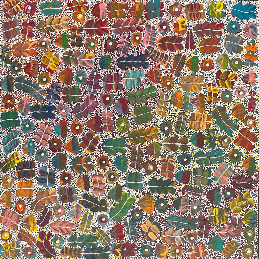 Bush medicine is the traditional aboriginal use of native Australian flora for the use of healing. It has been in use for thousands of years. Joycie paints the flora found in the country around Amperlatwatye in Central Australia.