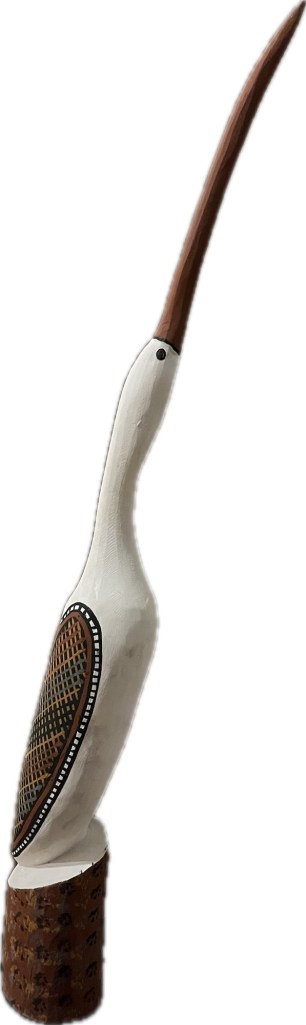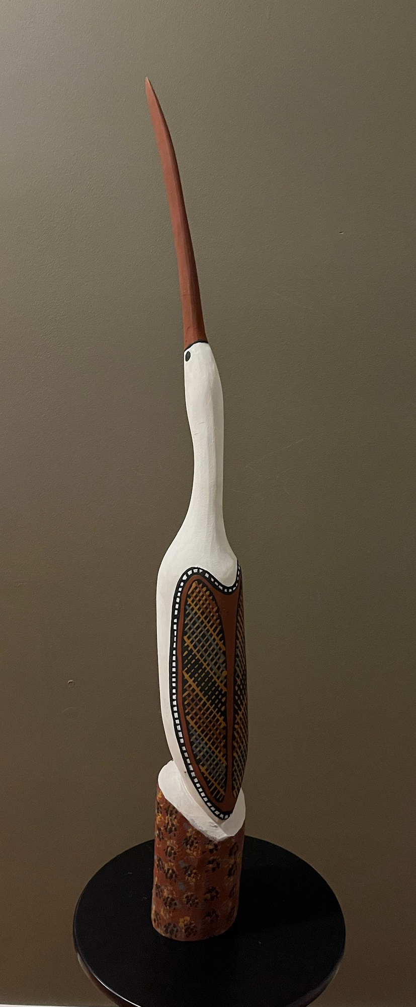 Mario Munkara is a well known artist from Bathurst Island. His sculptures are highly sought after. The elegance of this stork makes it easy to understand why.