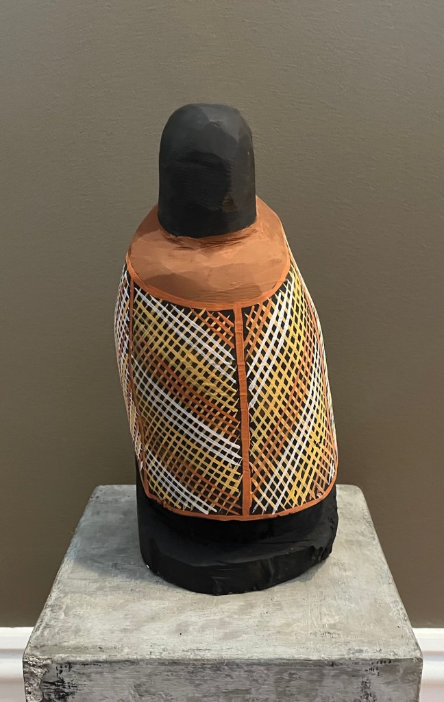 Munkara’s carvings reflect a deep connection to the land, sea, and animal life of the Tiwi Islands. His choice of ironwood not only honours local materials but also showcases the strength and permanence of cultural knowledge embedded in each piece. With its striking form and expressive personality, this sculpture is both a celebration of Tiwi identity and a testament to the enduring artistry of Arnhem Land’s northern communities.