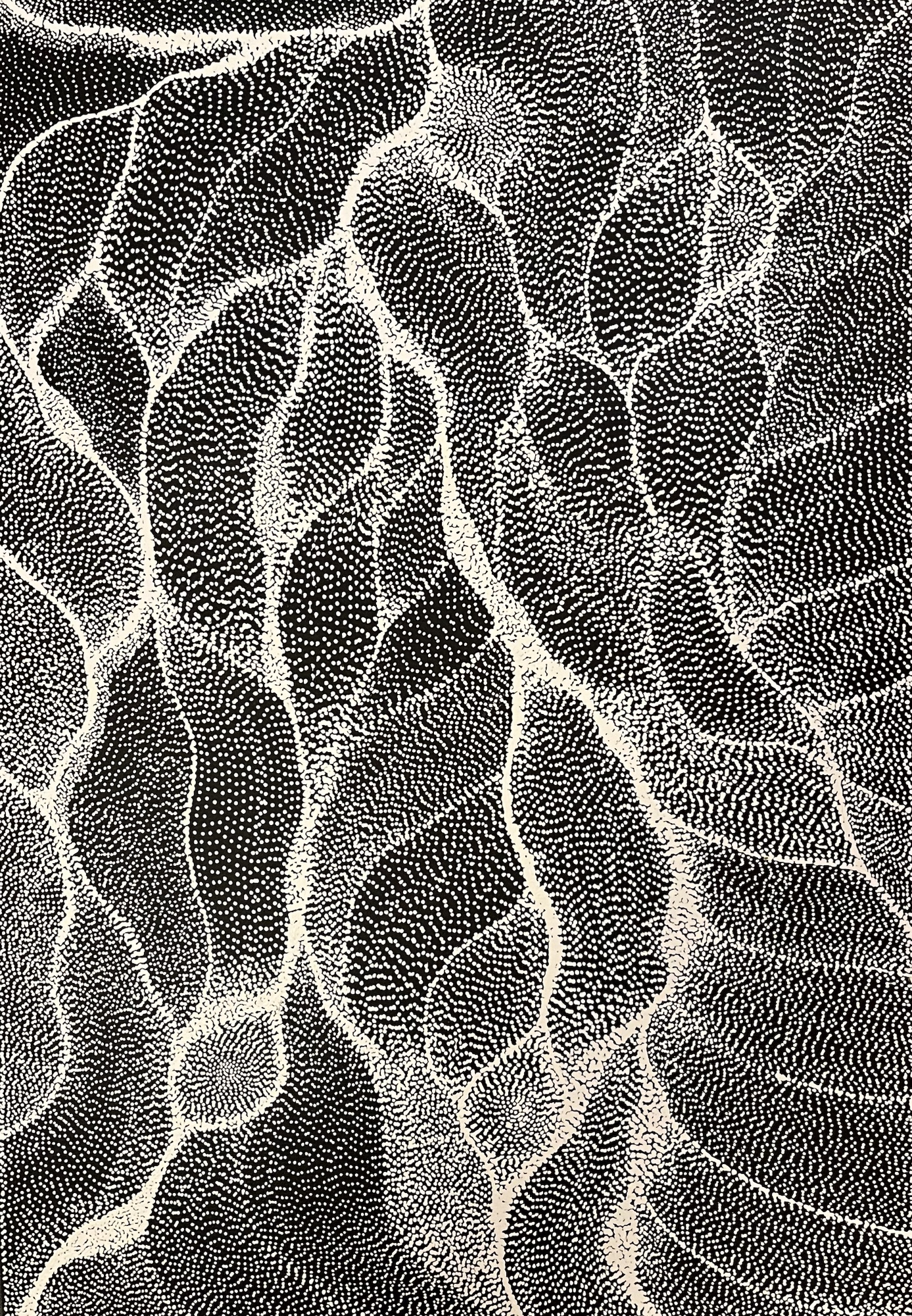 Anna Pitjara belongs to a celebrated lineage of Utopia artists. Her work balances precision with intuition, drawing viewers into a landscape that is both physical and spiritual.