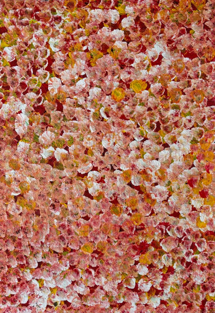 Kate Pitjara is part of a celebrated lineage of artists from Utopia, Central Australia. She is related to acclaimed artist Polly Ngale, and together with other members of her family, continues the rich tradition of painting Anwekety (Bush Plum Dreaming). These stories hold deep ancestral and cultural significance, connecting people to Country through ceremony and memory.