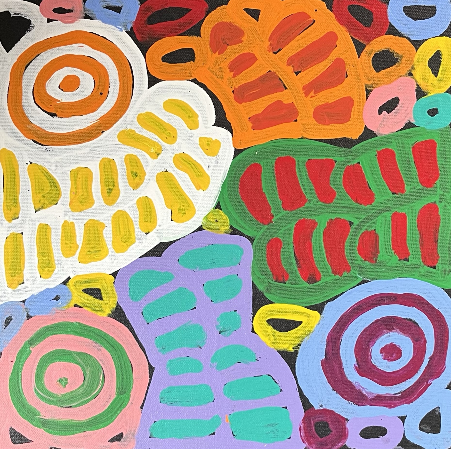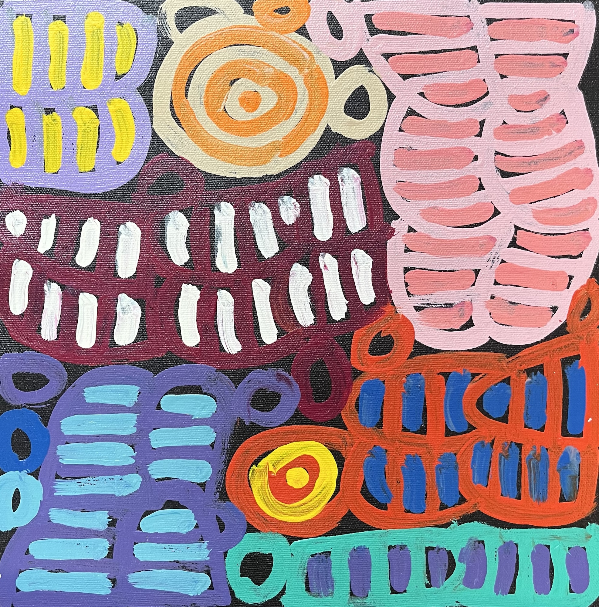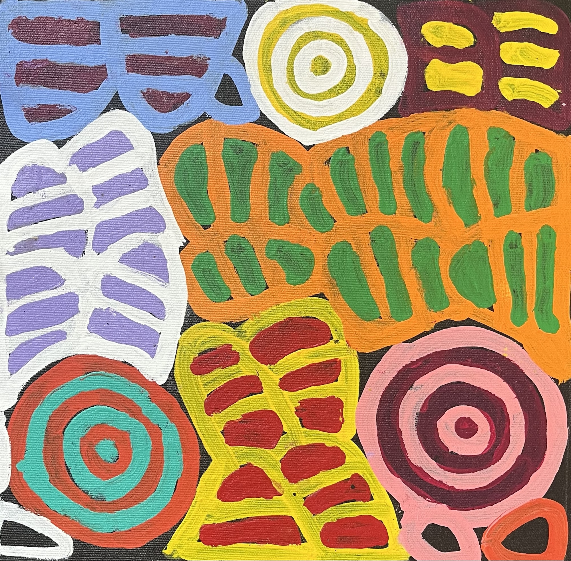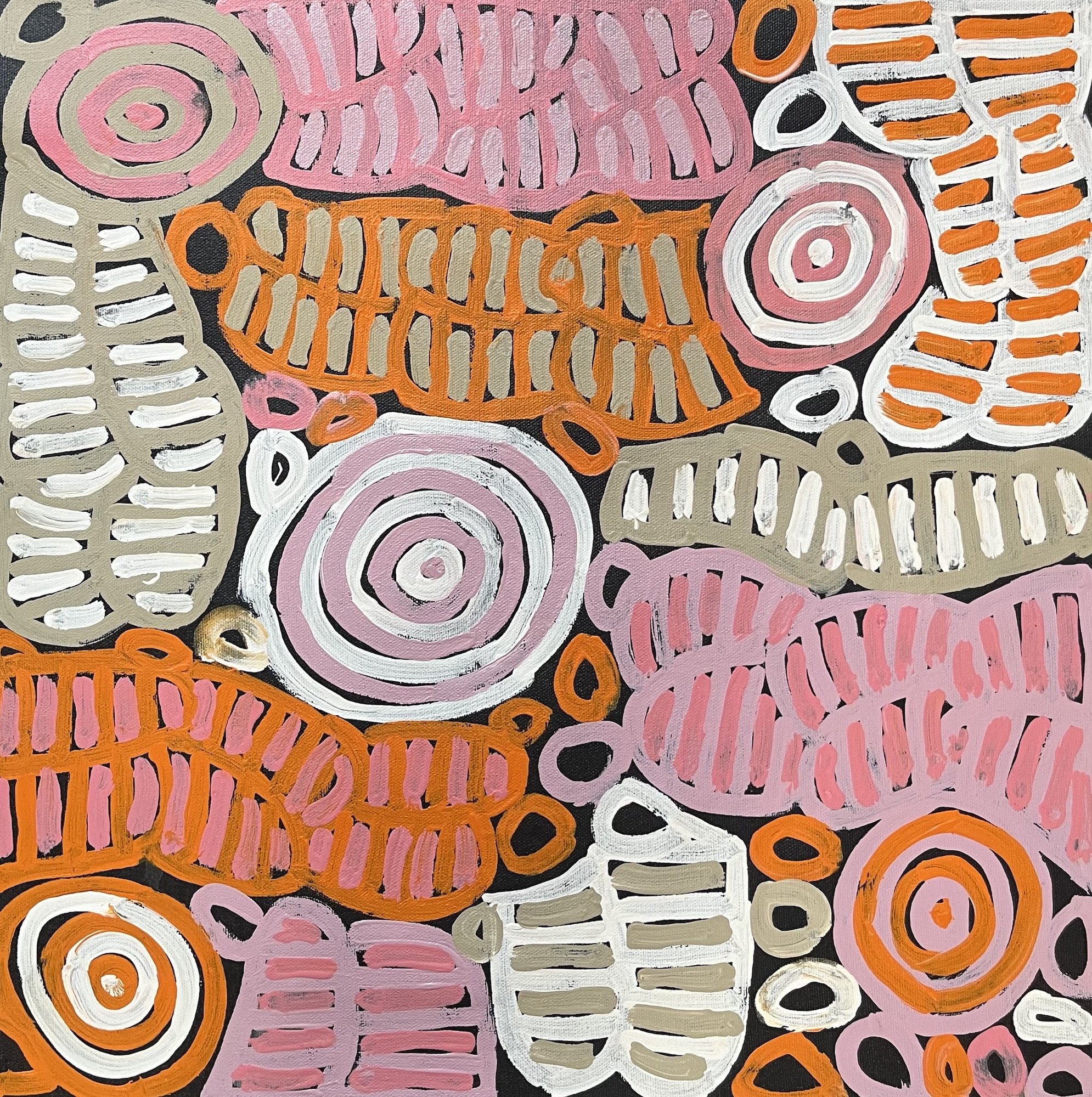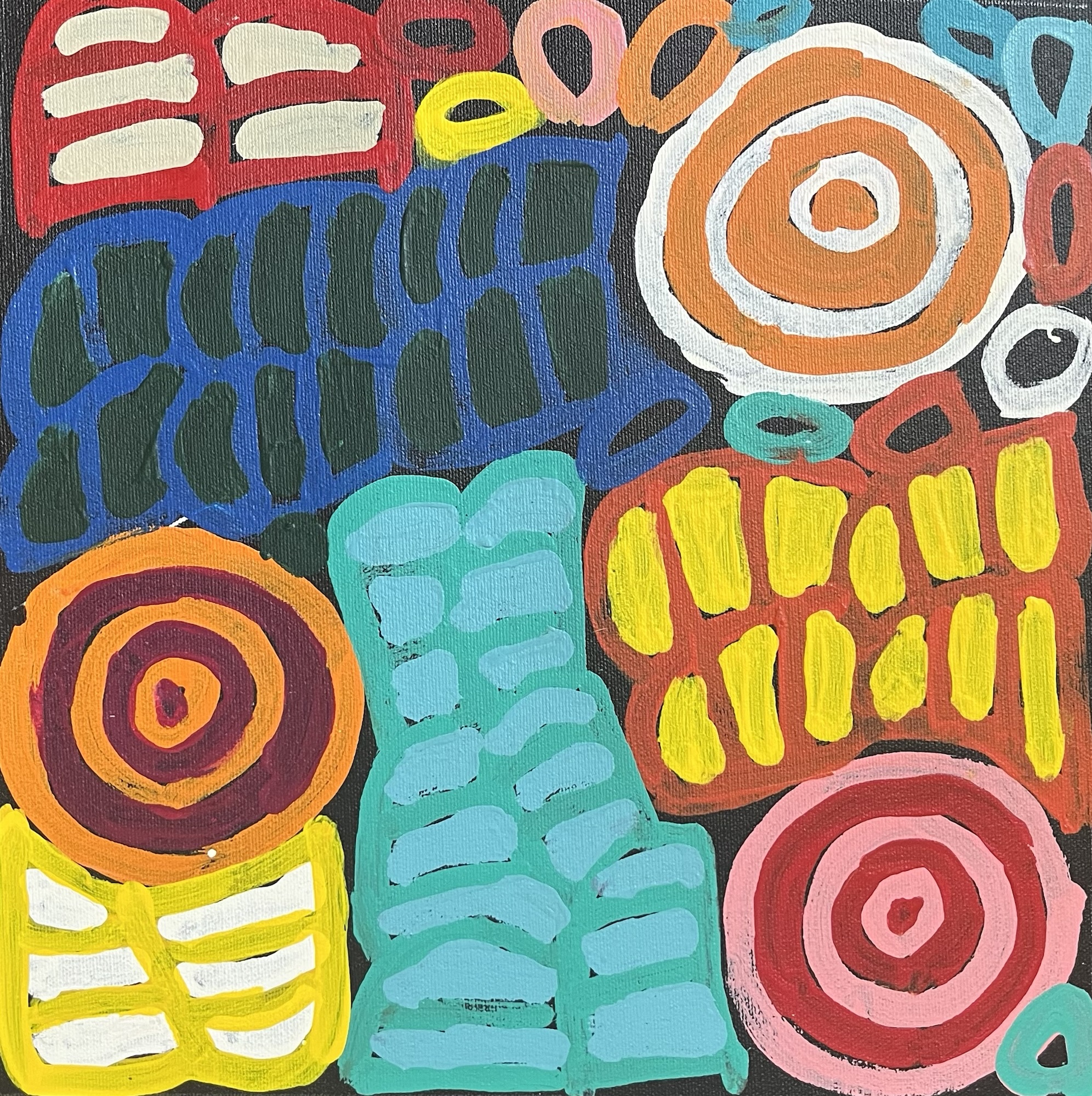 During sacred Women’s Ceremonies, the women paint thier bodies with patterned designed related to particular dreaming. The Dreaming religion is Aboriginal history, spirit-belief, ancestral knowledge, legend and culture transformed into a language which has no written words or records beyond memory itself.
