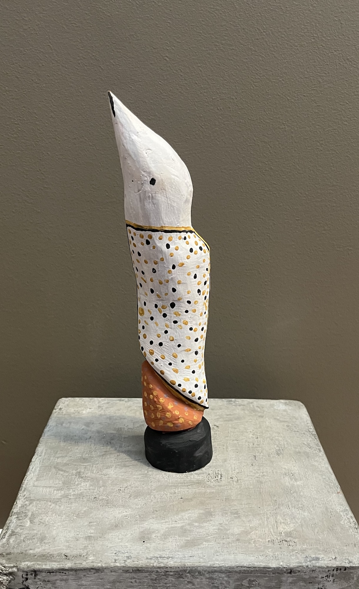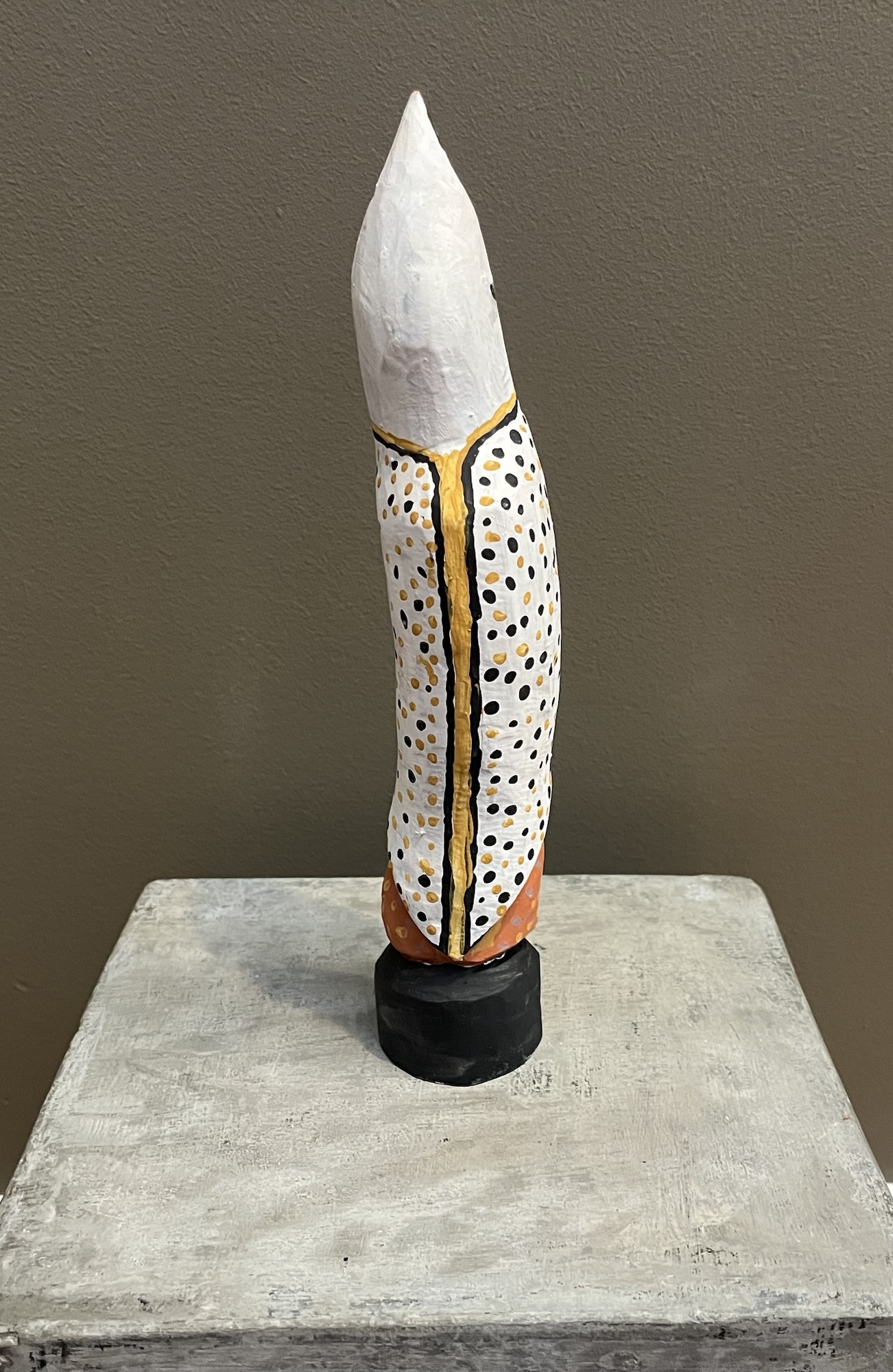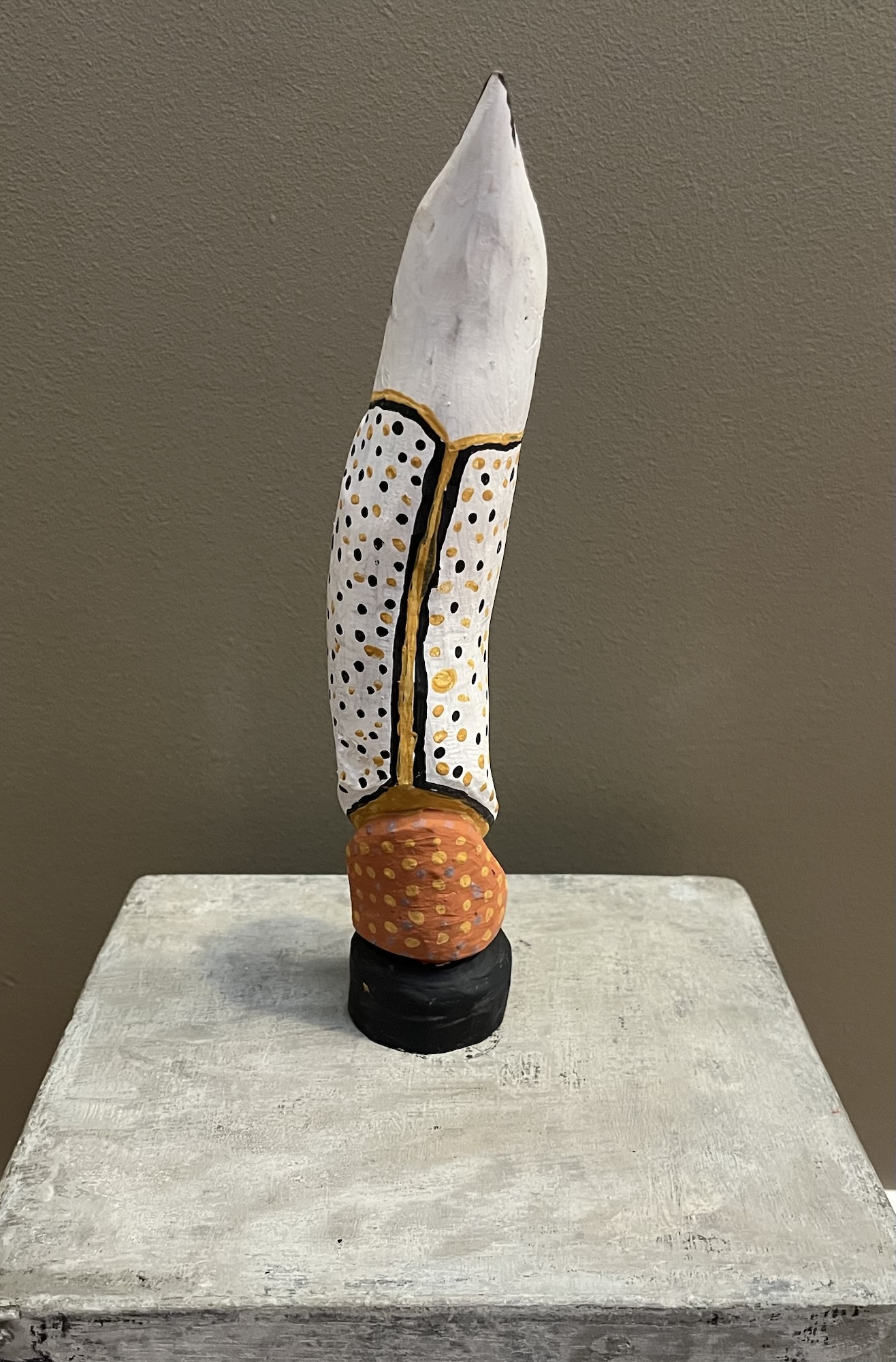 Tiwi bird carvings are hand made from ironwood and decorated with natural earth pigments. Referred to as Tokampini. They are present throughout the major creation story of the Tiwi people. Tokampini were mortal beings who acted as witnesses, messengers, mourners, informers, and lawmakers..