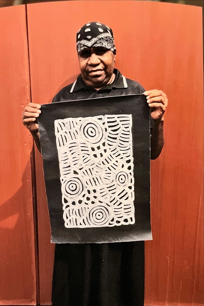 During sacred Women’s Ceremonies, the women paint thier bodies with patterned designed related to particular dreaming. The Dreaming religion is Aboriginal history, spirit-belief, ancestral knowledge, legend and culture transformed into a language which has no written words or records beyond memory itself.