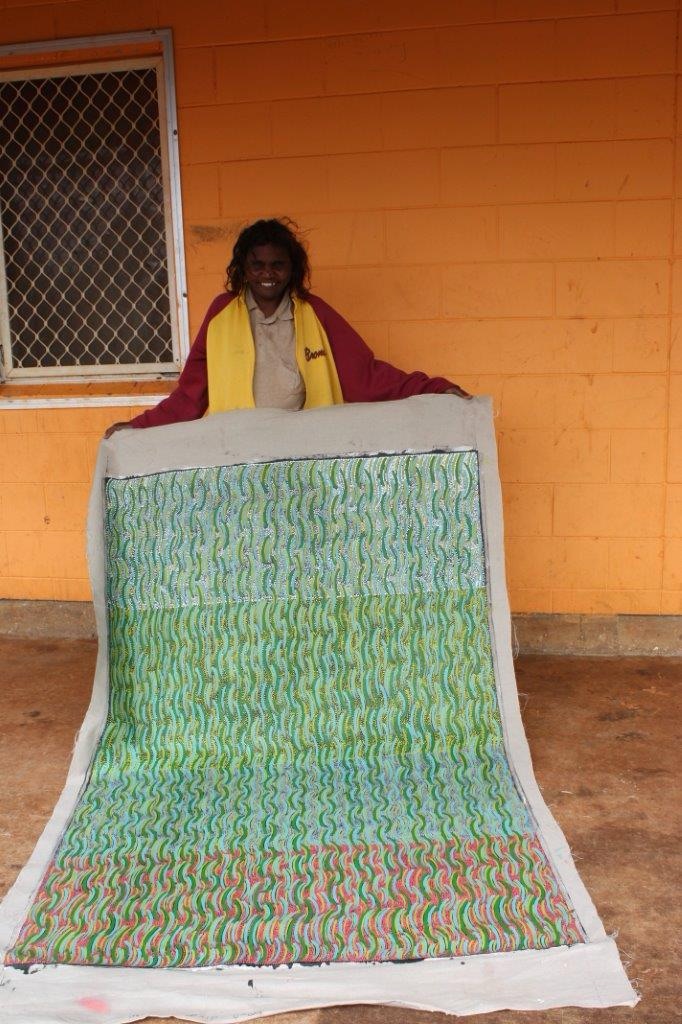 This is an immersive and energetic painting—rich in cultural significance and layered with ancestral knowledge. It makes a striking statement in any collection, while honouring the enduring connection between land, food, and dreaming.