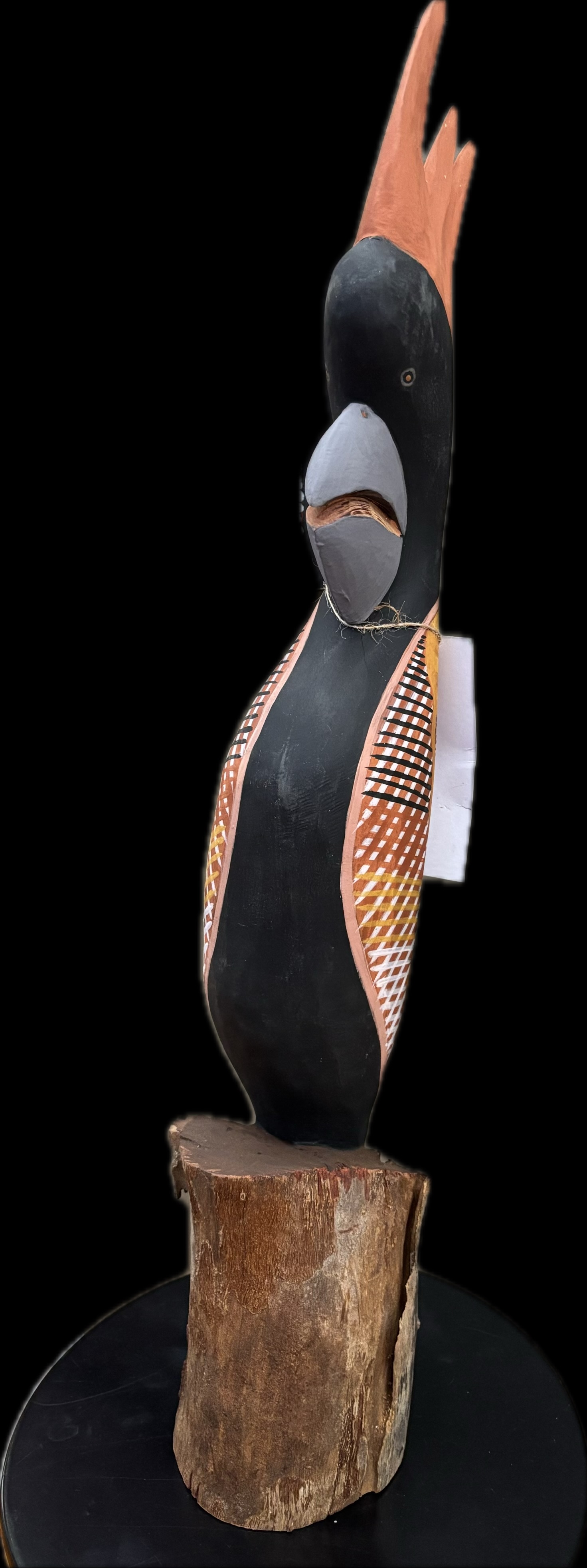 Each piece by Munkanome is a unique fusion of nature and culture—radiating life, memory, and ancestral presence. His Black Cockatoos are more than artworks; they are guardians in sculptural form, honouring Tiwi identity and the enduring voice of Country.